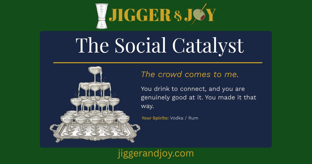 You drink to connect, and you are genuinely good at it. You made it that way.